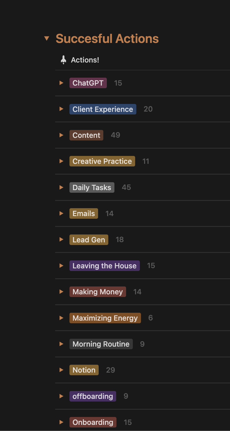 An Interactive Notion Template that Collects all your Good Ideas and the Actions + Experiments that they’ve inspired.